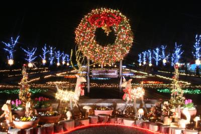 大小たくさんのシャンパングラスのツリーはいろんな色に変わりとっても幻想的!