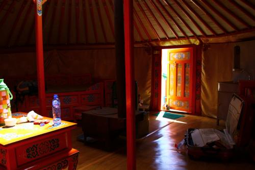辺り一面の草原にあるゲルに宿泊しました。朝晩は冷えましたがストーブがあるので暖かかったです。モンゴルはご飯がまずいと言いますが、こちらのレストランの食事はどれもとてもおいしかったです。昼間は乗馬、夜は星空、大自然を満喫して大満足です。再訪したいです。