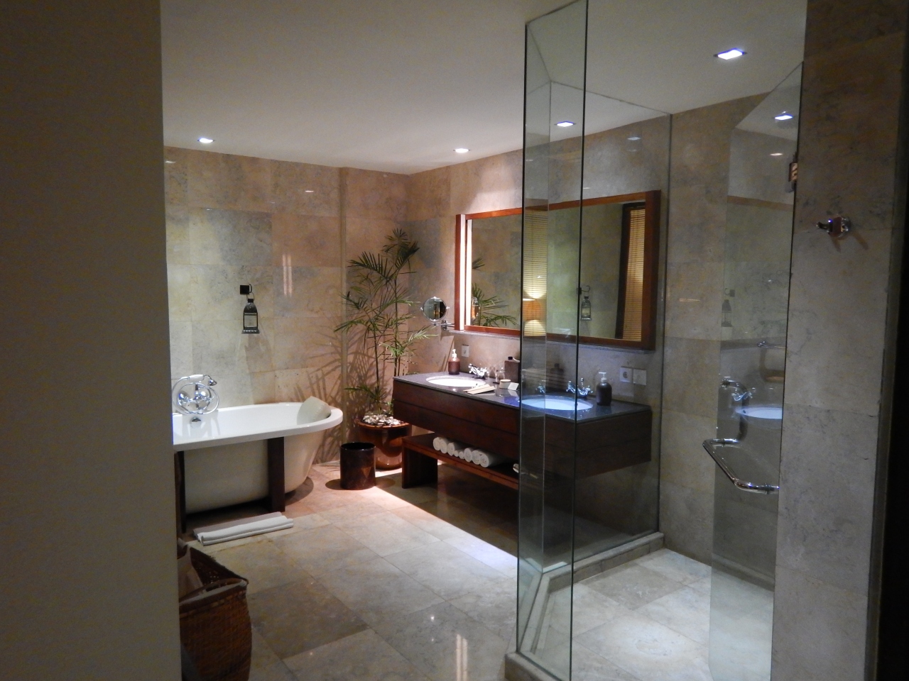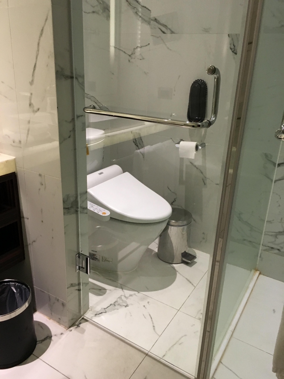 ゆったりしたバスルームにバスタブ、シャワーエリア(レイン&ハンド)、洗面台(据え付けドライヤーあり)、便器、とあるのですが、便器の目の前がクローゼットや金庫なのはどういうレイアウトなのか・・・。ここはいろんな意味で使いづらかったです。