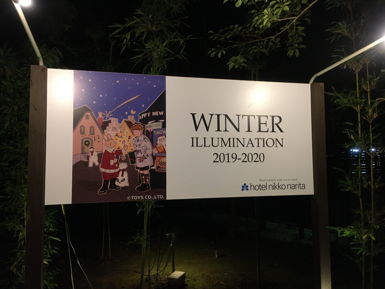 部屋からは空港を飛び立つ飛行機や、庭のイルミネーションが見えました。