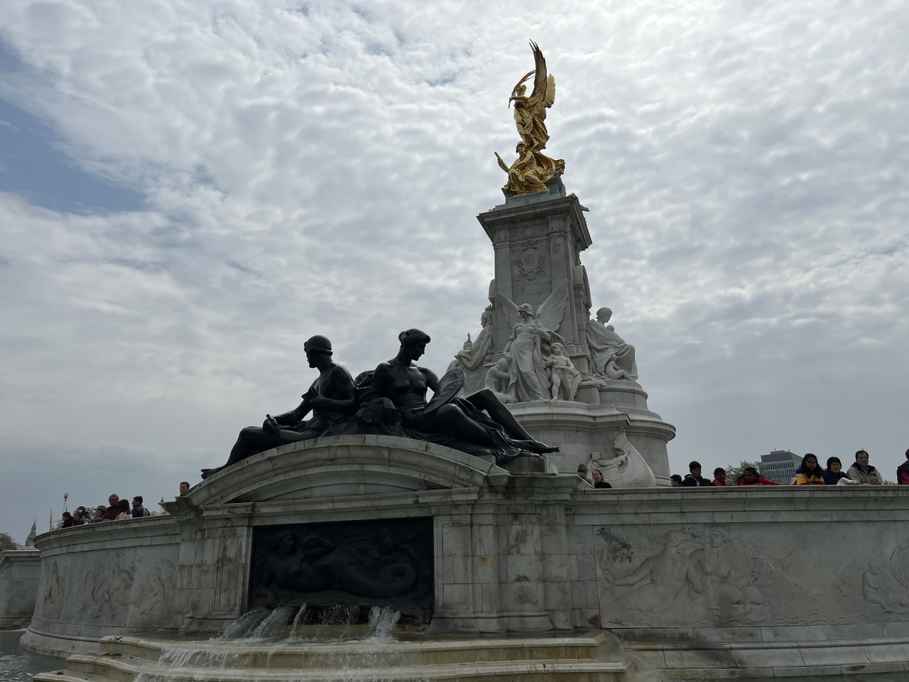 どこで見るのがいいのかウロウロしていたら、10:20頃にバッキンガム宮殿前のビクトリアメモリアルのエリアが開放されたので、移動!ビクトリアメモリアルエリア内の最前列ゲット出来ました。