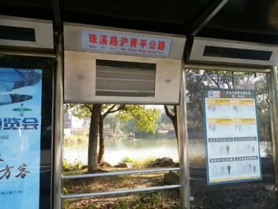 以前に行った時には直通バスで行きましたが、地下鉄17号線に朱家角の駅が出来たので、地下鉄で行ってみました。駅から徒歩で行けますが、朱家角駅からすぐの「珠渓路沪青平公路」というバス停から朱家角9路(ここから出るバスはほとんど朱家角古鎮周辺に止まります)に乗り2つ目の「凝祥路酒龍路」というバス停で降りてすぐです。