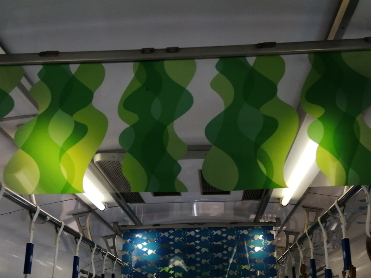 4種類のデザインがあり、それぞれ名前も付いています。ラッピングだけでなく、車内もそれぞれ趣向が違っていて、どれに乗っても楽しめました。