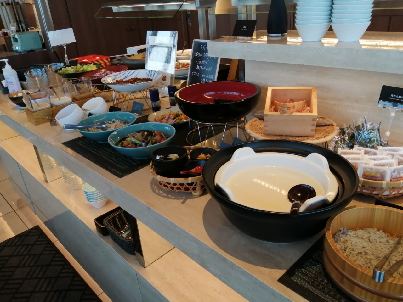 ・朝食はフロントの横にある会場(普段はレストラン営業していない)で食べる。11階のため、紀ノ川の眺望がとてもよかった。品数もちょうどいい感じで、一つ一つの味が良かった。(特に手作り豆腐、マーボーナスがおいしかった)