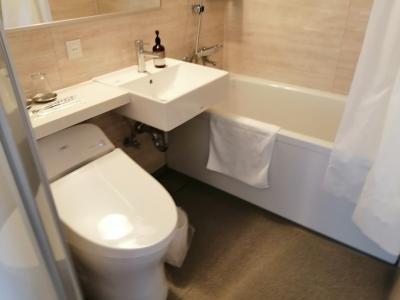 ・ユニットバスだが、屋上(12階)に露天風呂があるので、洗面台しかりようしていない。新しいためキレイだった。タオルもふかふかだった。