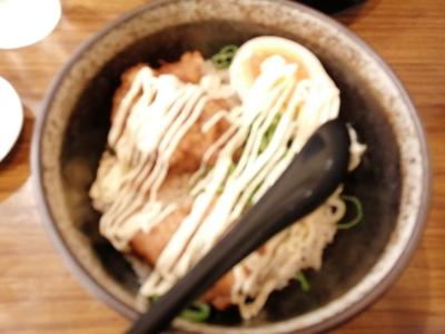 拉麺のスープは、とんこつ塩ととんこつ醤油とピリ辛味噌があり、とんこつ塩の味玉ラーメンと、唐揚げ丼(シェア)を注文しました。