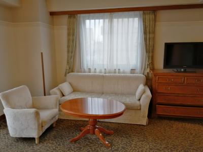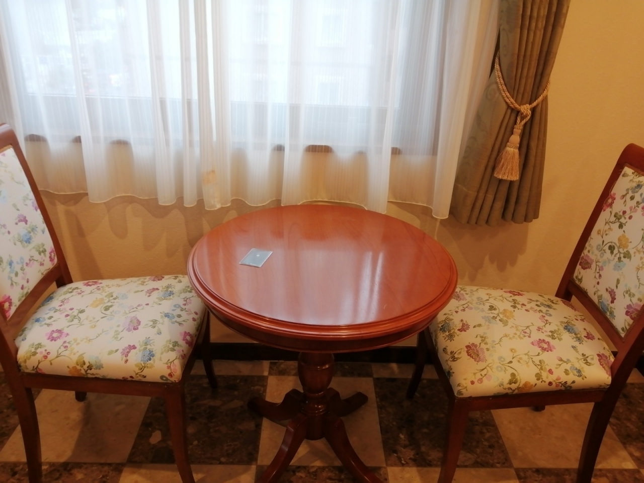・家具がレトロな雰囲気で良かった。寝室のソファセットとテーブルとは別に、居間の様なスペースに小さなテーブルと椅子のセットがあった。