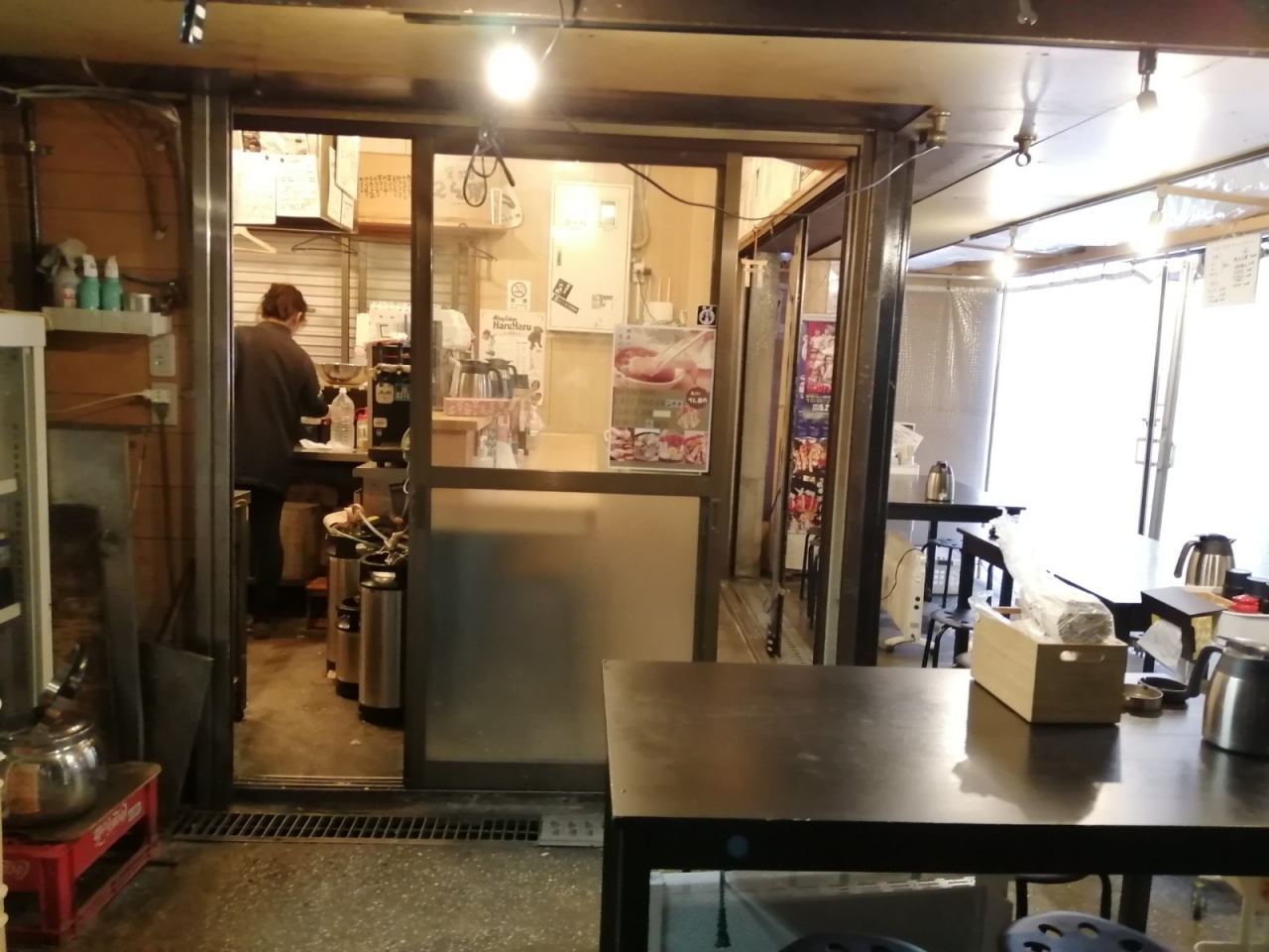 店内はドラム缶焼き肉店の様なカジュアルな雰囲気で、丸椅子の中に荷物が入れられます。