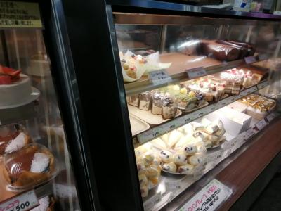 こちらのミルフィーユが好きで、買いに行きました。冷凍してあるので、しばらく常温で解凍する必要があります。私はミルフィーユ(450円税抜き)、夫は期間限定のヘーゼル(450円税抜き)にしました。