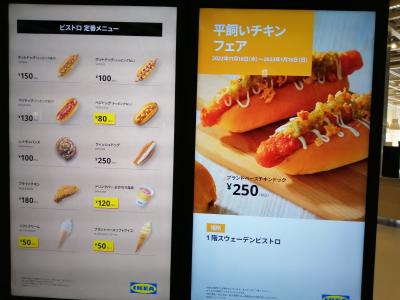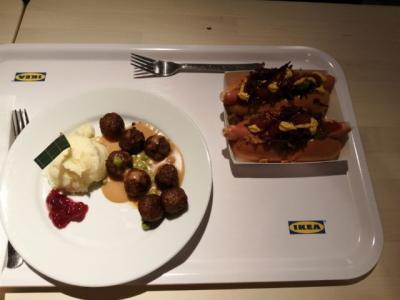 レストランでプラントボール(肉を使っていないミートボール)490円とドリンクバー(イケアファミリーだと11時から12時は無料)を注文し、一階のビストロでホットドッグを買ってレストランで食べました。