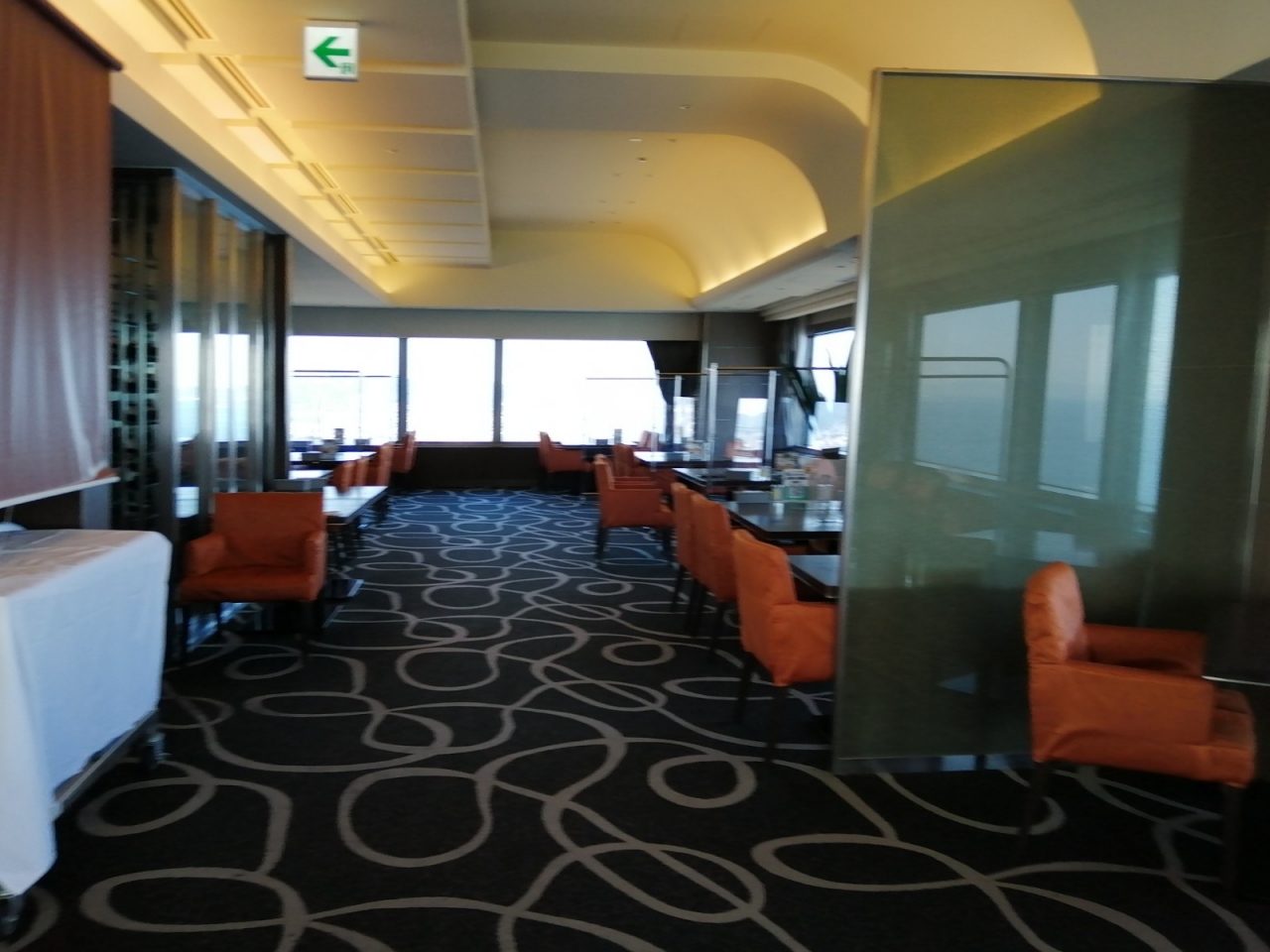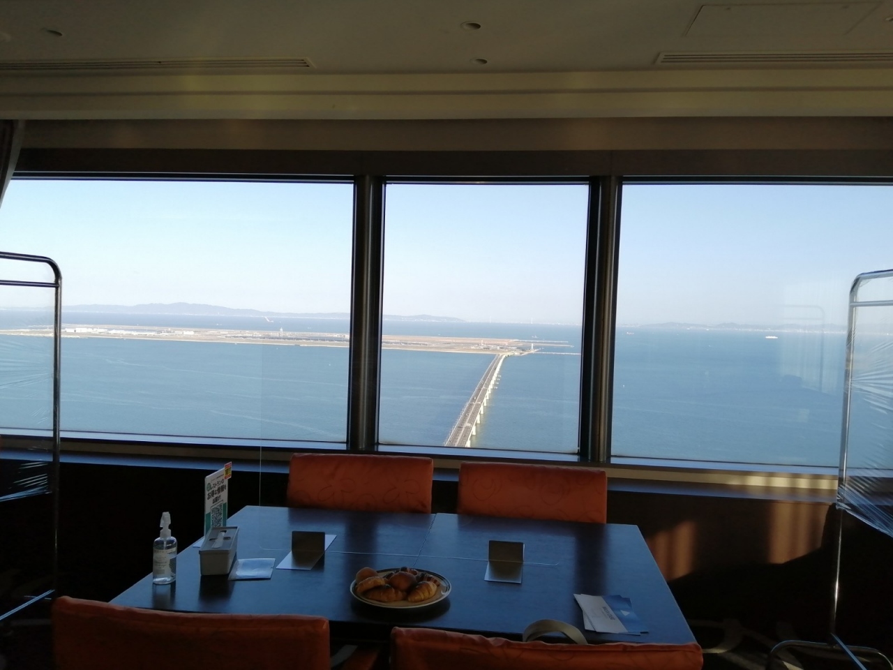 オリエンタルスイーツホテルに宿泊すると、今は朝食会場がこのレストランになります。スターゲイツホテルの52階にあり、自由に席を選べます。関空が見える席では、飛行機の離発着も見えます。消毒液、検温、マスクケースもあり、使い捨て手袋も使用ごとに捨てるようになっていて、食器も一度ごとにかえる様になっています。品数はそれほど多くなく、和洋食の定番メニューと大阪ということもありたこ焼きもありました。オムレツなどをキッチンで作るコーナーはなかったです。塩サバとクロワッサンがおいしいです。トースターで温めることもできます。景色がすばらしく、感動しました。スタッフの皆さんも明るく、感じよかったです。一人用の仕切られたカウンター席もいくつかあります。