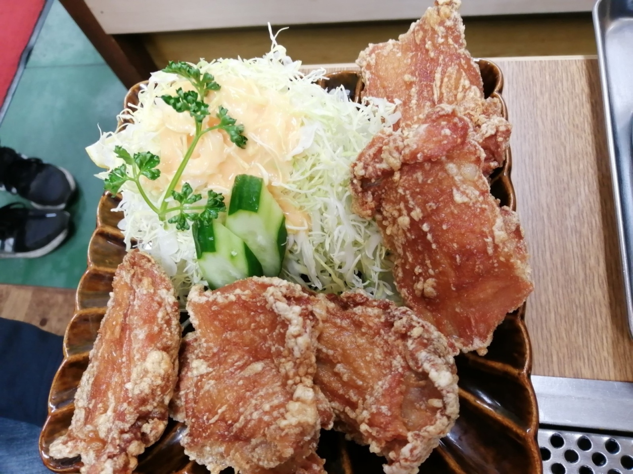 老舗で近隣のお客さんが多いようです。鉄板焼き屋さんで、お好み焼きや焼きそばなどはもちろん、唐揚げがとてもおいしいです。