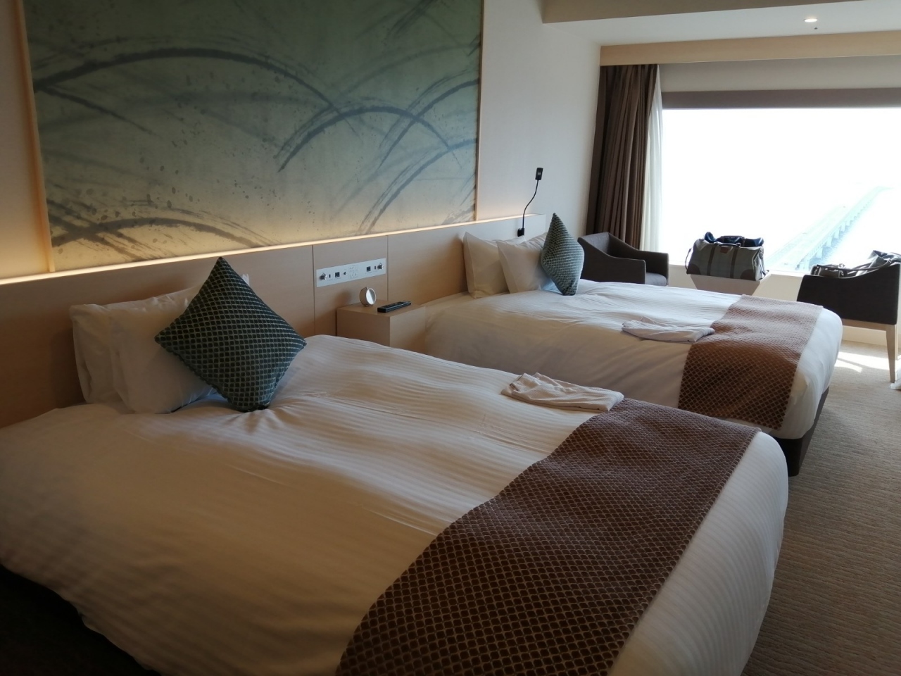 ・デラックスツインは部屋がとても広く、シービューだったので関空が見えてよかった。カードキーがないと、フロアに入れない様になっていて安心です。