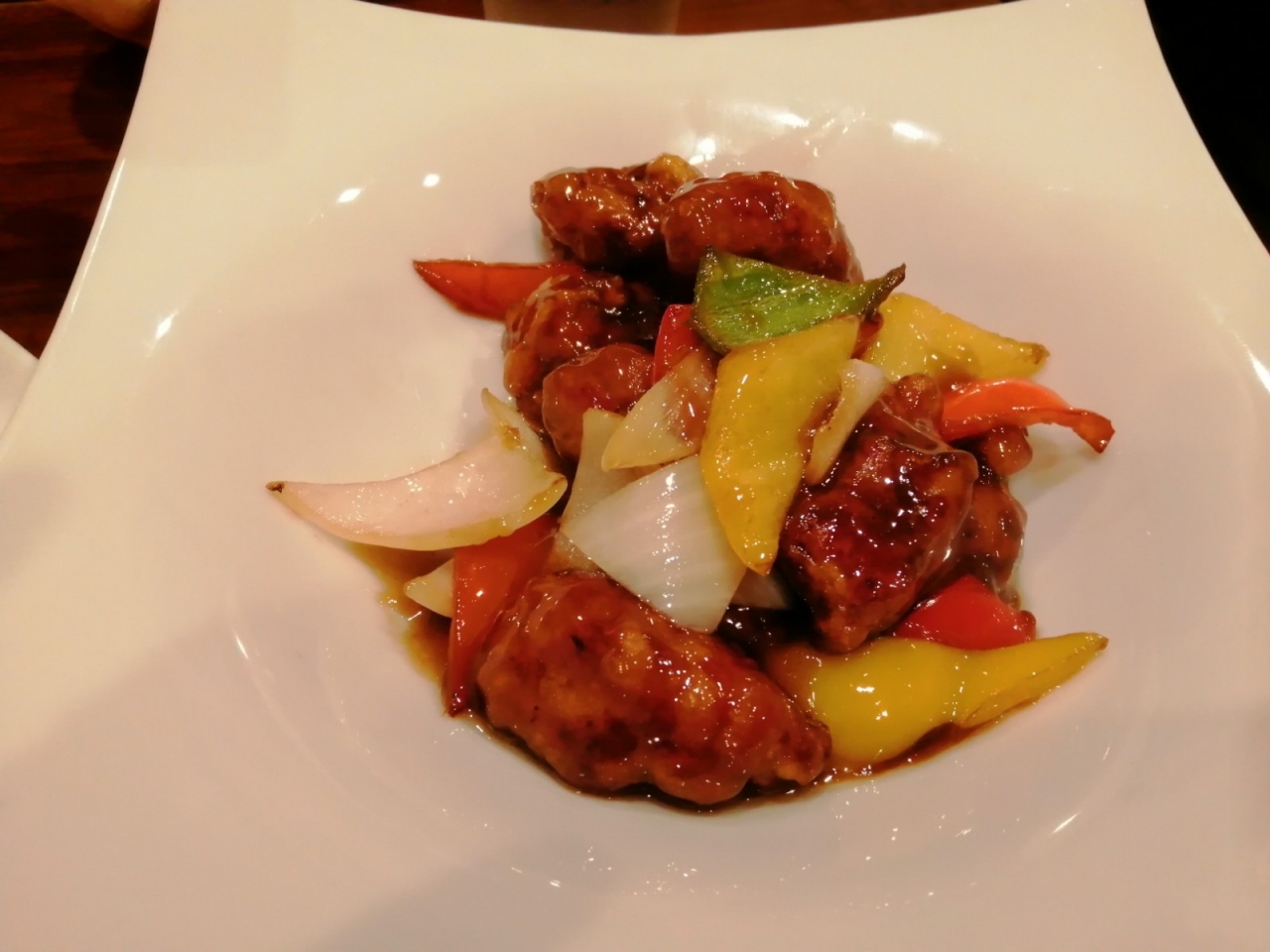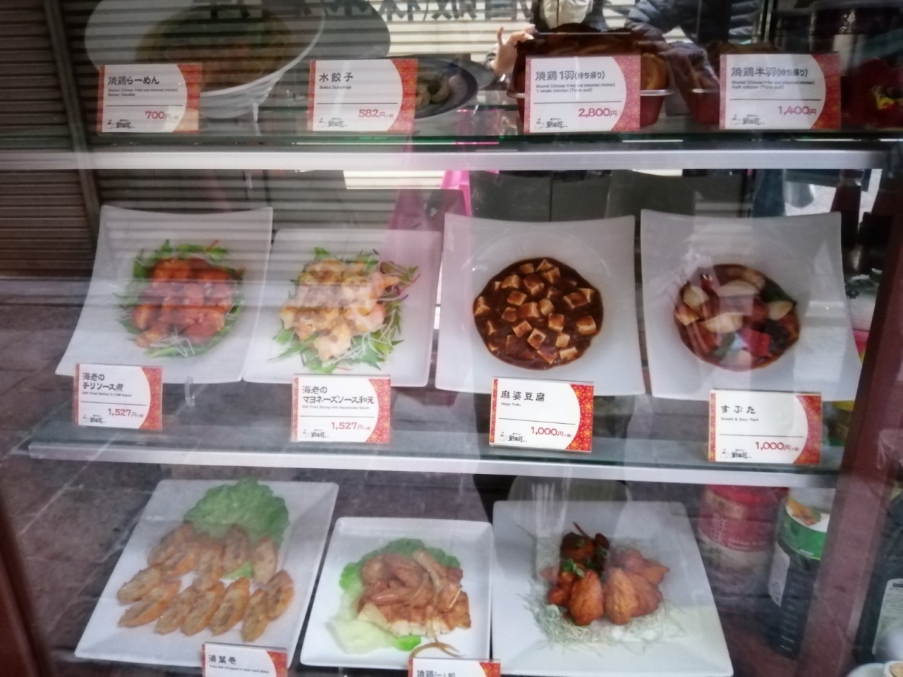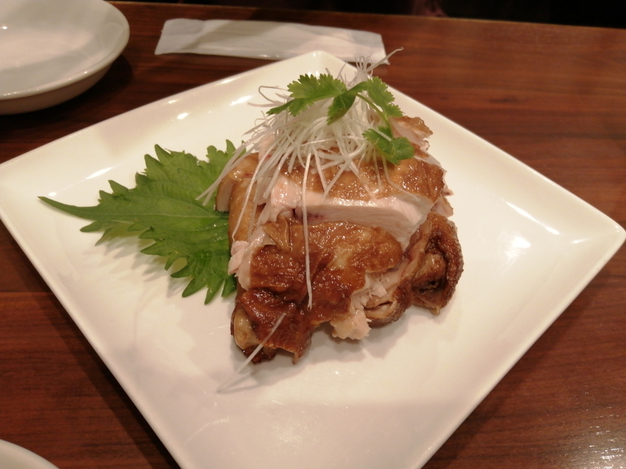 焼鶏という料理が有名なお店で、1階はカウンターのみ、2階にテーブル席があります。(3階もあるようですが、見ていません)焼鶏一人前(1018円税抜き)と黒酢の酢豚(1272円税抜き)と炒飯(791円税抜き)注文し、二人でシェアしました。どれもおいしかったですが、他では食べたことのないのは焼鶏で、焼いてあるのですが、蒸し鶏の様に軟らかく、味も中華の風味(八角?)もありました。焼鶏は人数に合わせて色々な分量があるのでいいです。二人で税込み3380円でお腹一杯になりました。