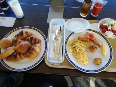 ・朝食はスターゲイトの52階のレストランでビュッフェでした。見晴らしもよく、料理も定番の和洋食でおいしかったです。消毒や手袋、検温、アクリル板などの対策も万全でした。