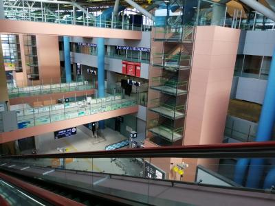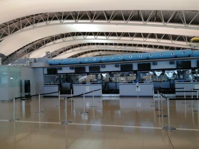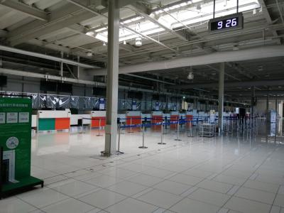 第一ターミナルから連絡バスで5分ほどで着きます。第二ターミナルビル内はほとんど人がおらず、閑散としていました。新しくできた第三ターミナル(国際線専用)はカウンターすら閉まっており、誰もいなかったです。