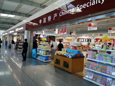 免税店も化粧品ブランドのお店がいくつか(シャネル、ディオール、エスティーローダー、ランコム、他に2~3のブランド)とお土産のお店くらいで、時間を持て余すくらいです。お土産のお店に入ると、店員さんが一人ずっとついてくる感じです。