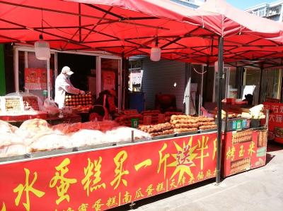 金州区にある歩行者天国です。和平路の駅から金州101路のバスで三つ目のニューマートのバス停で降りて歩けます。