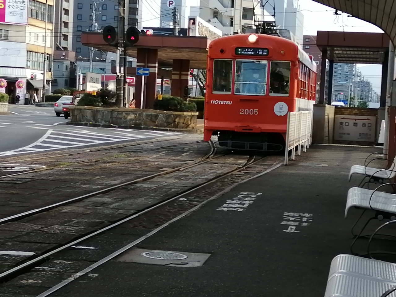 松山市内を走る路面電車に乗りました。