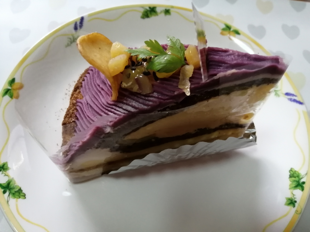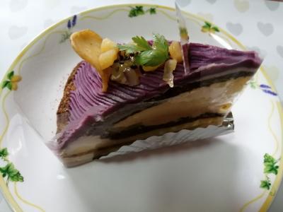 タルトが食べたかったので、どれにするか迷いましたが、紫芋のティラムスタルト(650円税込み)が色合いも綺麗でおいしそうだったので購入。