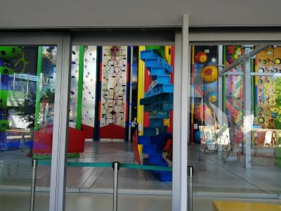PANZAというボルダリングができる施設でした。中を覗くと、色んな種類のボルダリングがあり、子供が何人か上っていました。