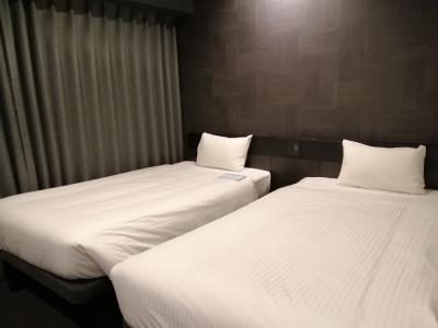・部屋(スーペリアツイン)は3人宿泊してもゆったりしている広さで、部屋の雰囲気もグレーの配色で飾りも少なく、ライティングでオシャレな雰囲気を出している。