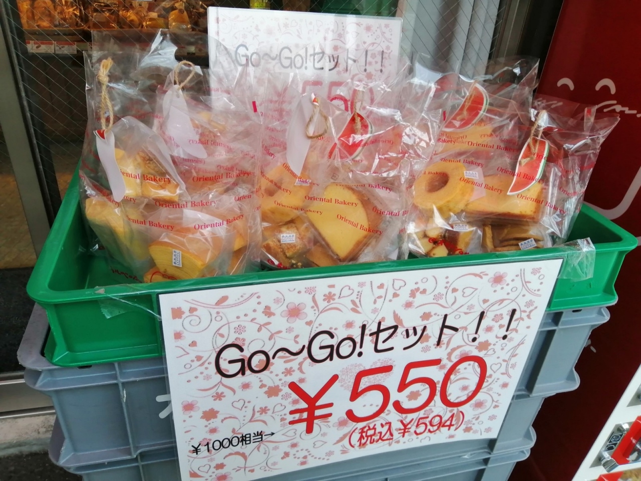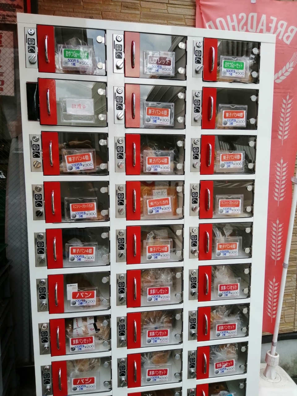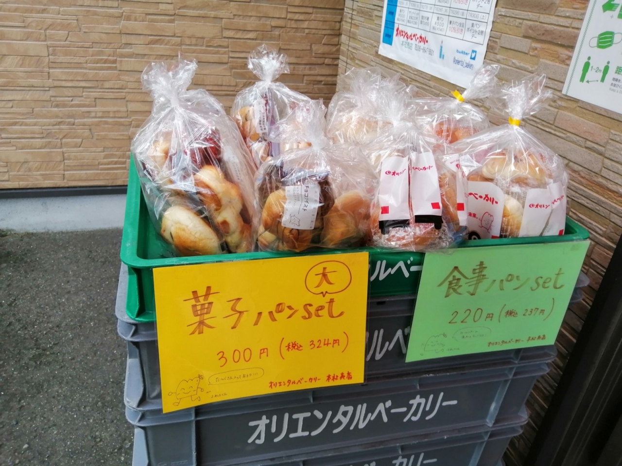 小さなお店で、入口に特売(訳アリ)もありました。店内にはパンが並んでいて、時間外でも買えるように、自動販売機も店外にありました。入口の菓子パンおまとめの商品がお得感ありました。- 旅行時期