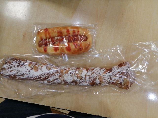 品揃えは結構良くて、どんどん補充されていました。フランクロールと、ビッグデニッシュ(メープル)を購入。どちらも108円です。イズミヤのイートインコーナーで食べました。ビッグデニッシュは他の阪急ベーカリーでいつも食べているので、いつもながらとてもおいしいです。フランクロールはパンがフワフワで、ウィンナーはパリッとしていておいしかったです。
