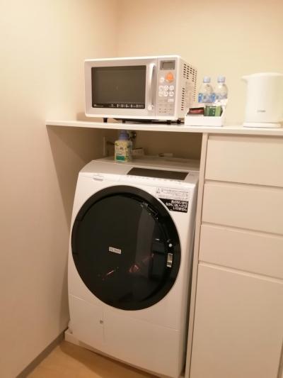 ・全自動ドラム式洗濯機やキッチンがあり、洗濯、洗い物(食器)などもできる。洗濯洗剤は柔軟剤入りのものが備え付けてあり、乾燥までできるので、便利。(一時間半ほどで洗濯と乾燥をして、しっかり乾いた)