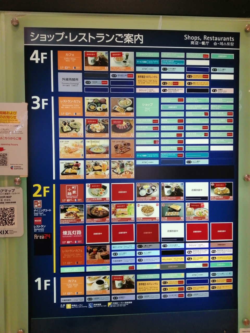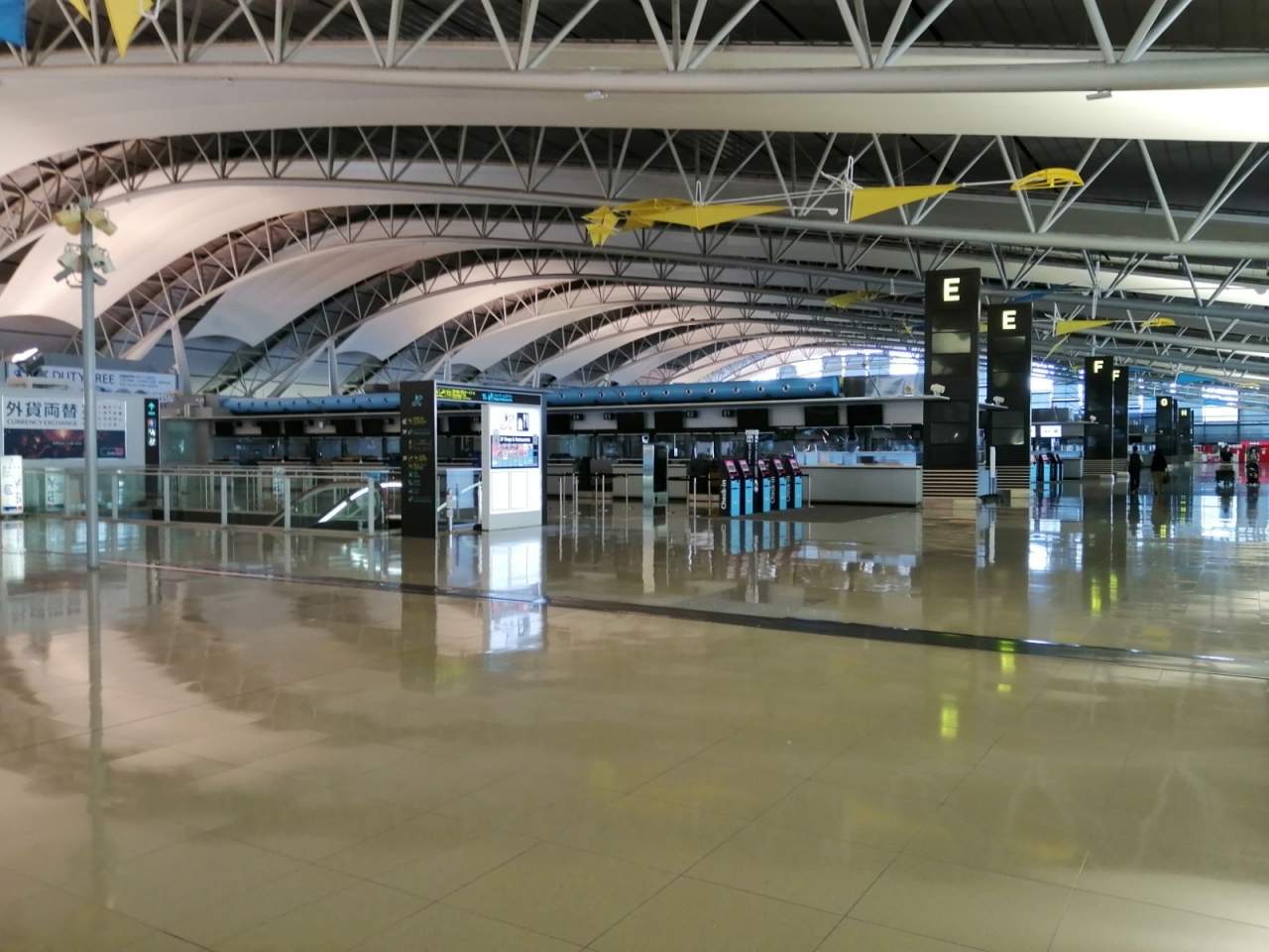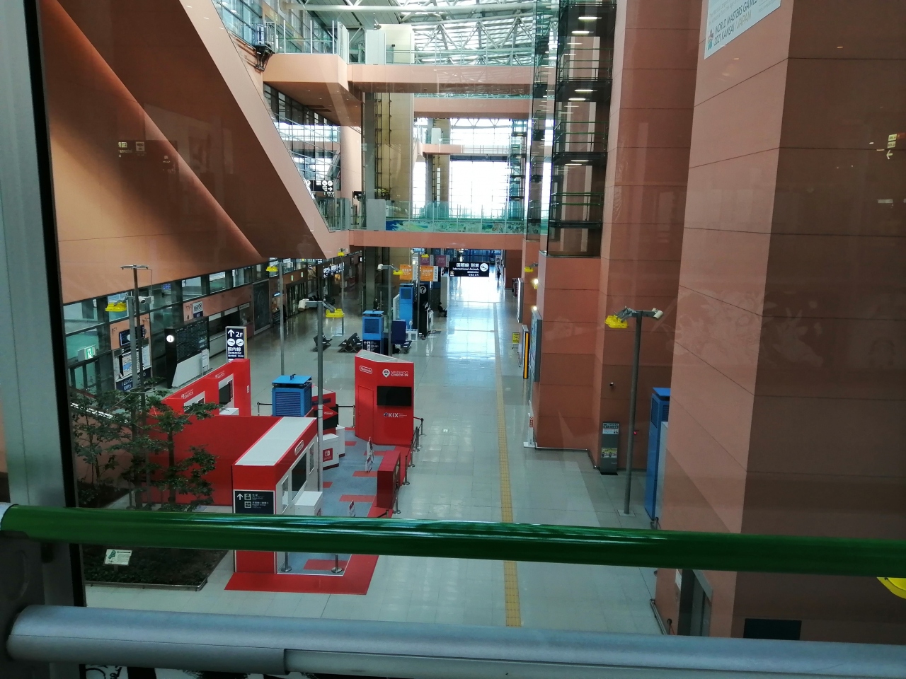 前回半年前に来たときよりは国内線カウンターが開いていた分、お客さんもちらほらいました。お店は相変わらずほとんど閉まっている状態で、寂れていました。KIXカードのフライトポイントで500円の食事券に交換できる期限は、今年の9月末までの様です。ターミナル2階のインフォメーションカウンター横の自動発券機で交換し、インフォメーション(9時から17時)で食事券を発券します。(有効期限6ヵ月)