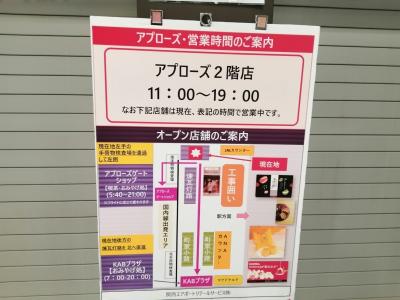 朝10時頃にアプローズ2階店に行ってみましたが、閉店していて案内が貼ってありました。