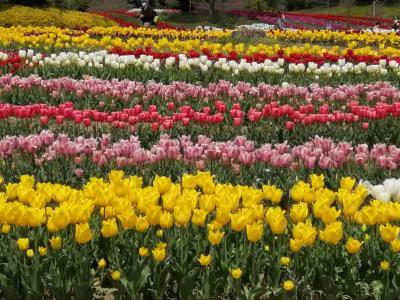 春のチューリップやバラだけでなく、夏のアジサイ、菖蒲、秋にはコスモス、バラなど年中色々な花が植えられていて、見ごたえがあります。北エリアと中央エリアがあり、結構広いです。春は特に一斉に様々な種類のチューリップが咲いていて、圧巻です。駐車場も無料ですが、季節のいい時はすぐに満車になります。