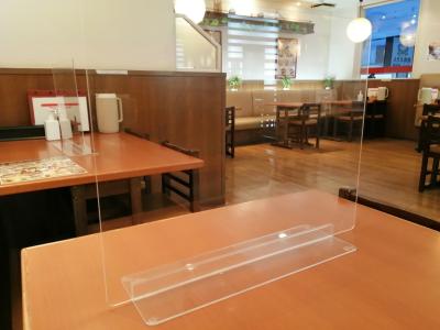 窓際にはテーブル席の他、一人でも利用できるカウンター席がたくさんあり、アクリル板もついていました。