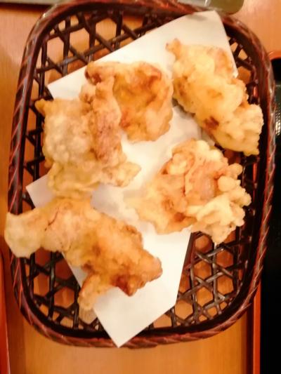 キャンペーンで一部丼メニューが390円になっていました。地域クーポンを利用。鶏天と海老天の丼をそれぞれ注文し、単品で海老天2つと鶏のから揚げを5個追加して、二人でシェアしました。