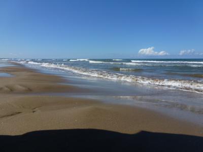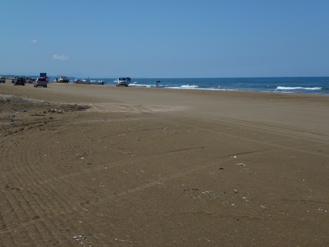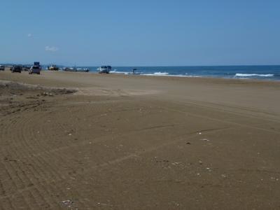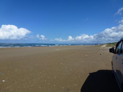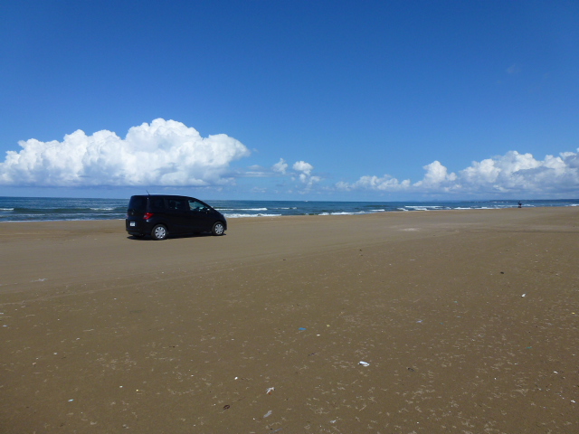 車で走れる砂浜です。車線がないため不思議な感覚ですが、砂浜の幅が広く、スムーズに進めました。途中停車し降りることもできました。波打ち際のぎりぎりを走る車もありました。天気のいい日は気持ちがいいです。この砂浜の先には出店が数軒ありました。