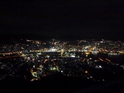 車で行きました。展望台から離れた所に無料パーキングもありましたが、街頭が少なく暗いし、上り坂がしんどかったので、近くの有料パーキングへ停めました。1000万ドルの夜景だとか、日本3大夜景だとか、世界新三大夜景だとかいろいろと宣伝されていて、どんなものかと思って行ってみました。夜遅かったのでレストランは閉店していましたが、展望台からの景色は想像以上にきれいでした。展望台のちょっとしたイルミネーションもよかったです。人もそれほど多くなく、少し寒いかなという程度の気温で座るスペースもあり、ゆっくりと夜景を堪能できました。
