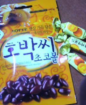 かぼちゃの種をチョコでコーティングしたお菓子。