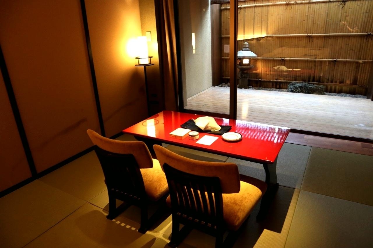 半露天の専用風呂と檜の内風呂があり、どちらも京都の坪庭を眺めながら旅心を楽しませてくれます。