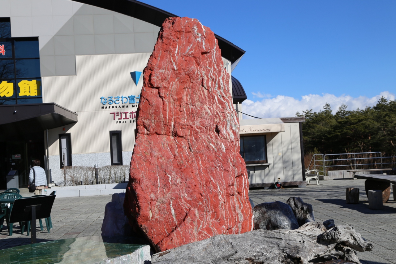 綺麗な富士山に誘われ、道の駅「なるさわ」に立ち寄る。富士の湧水を味わい、富士の写真を撮った後、「なるさわ富士山博物館」に入る。博物館の前には、大きな石類が沢山置いてある。博物館の中には多くの宝石類が販売されていた。無料なので富士山の歴史の展示を見学する。短編の富士山を紹介する映画もやっていた。