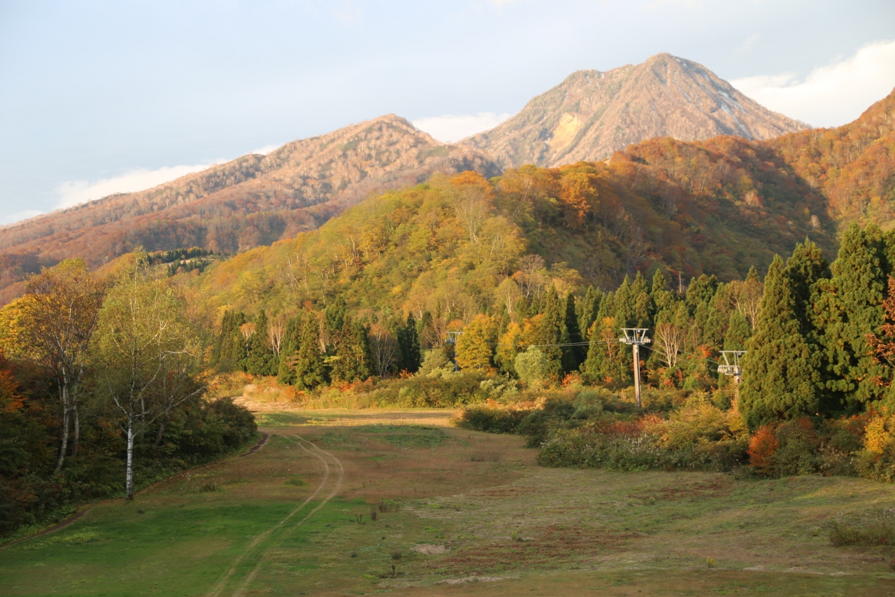 - 窓から妙高山をバックにゲレンデが広がりグー。