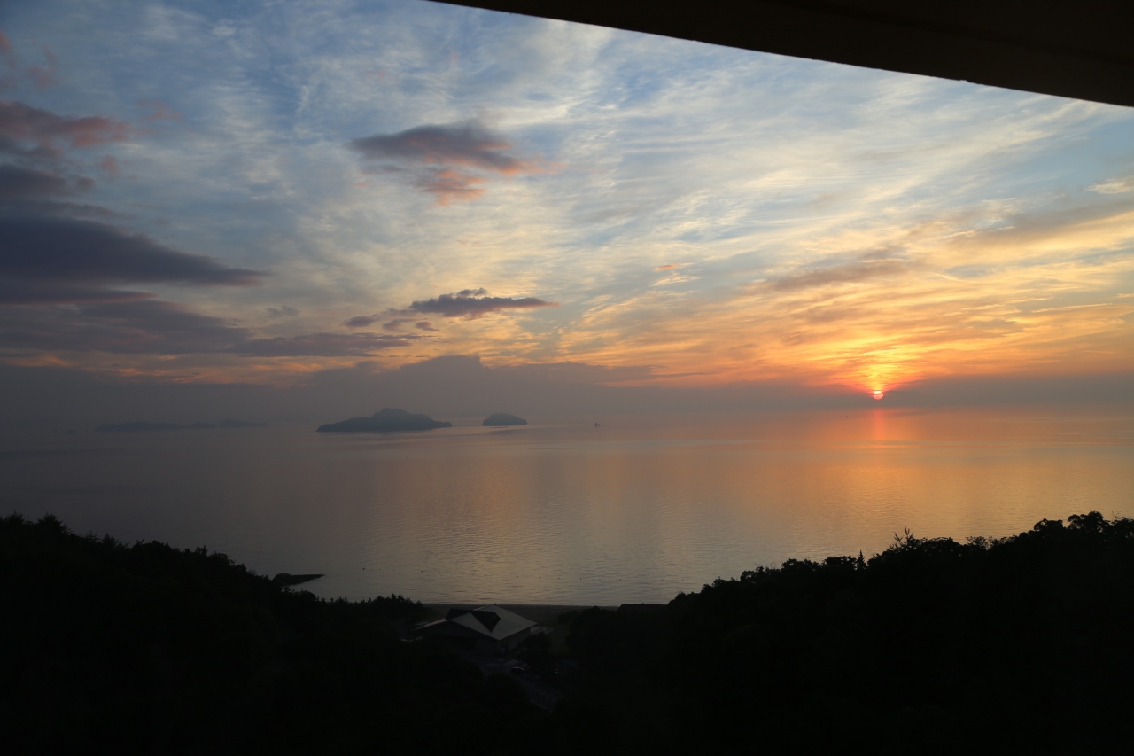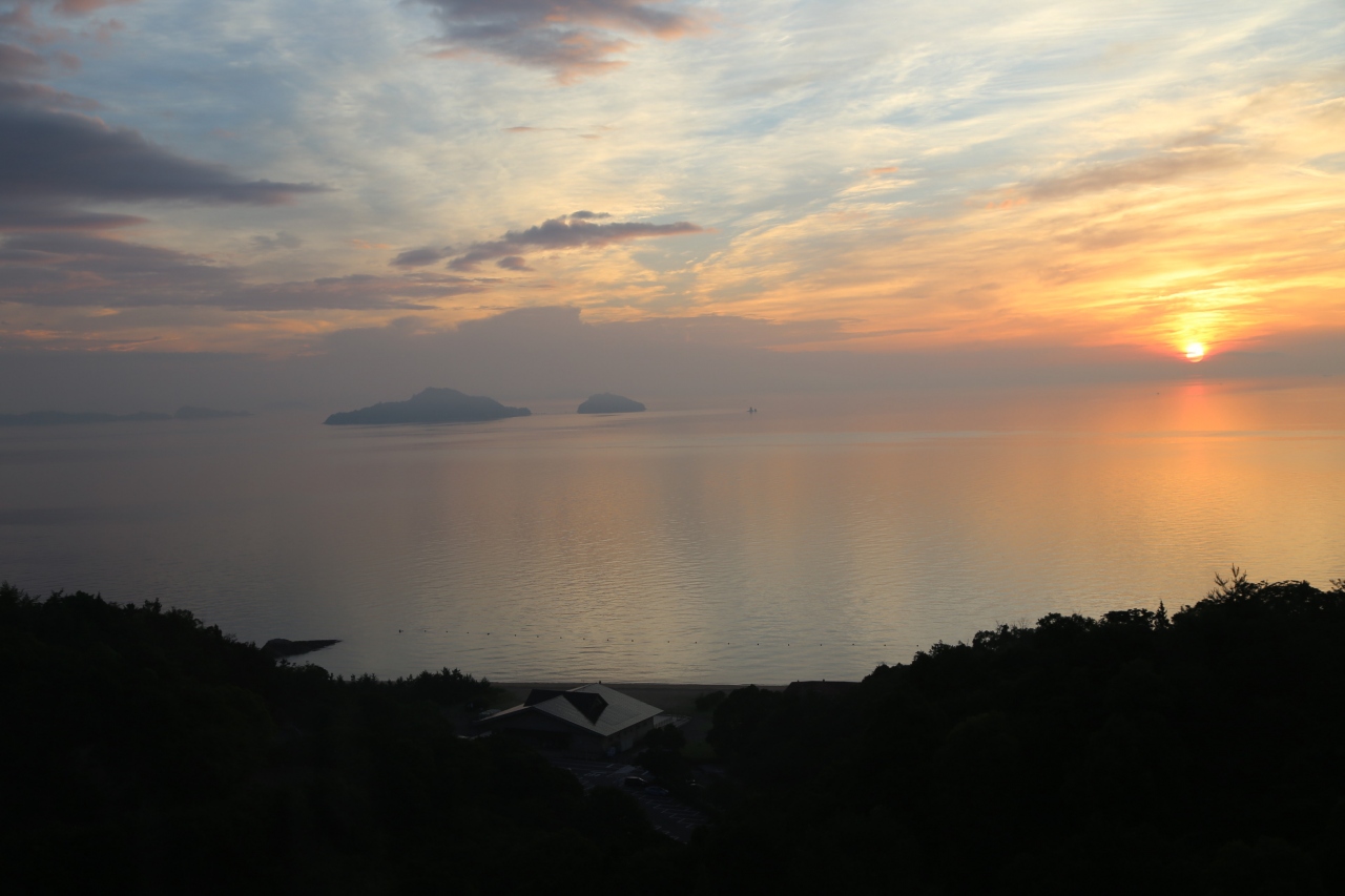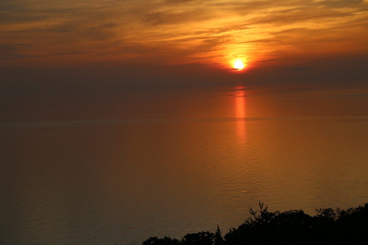 温泉に日没時に入ったところ、トカラ列島に沈む夕日を綺麗に見ることが出来た。