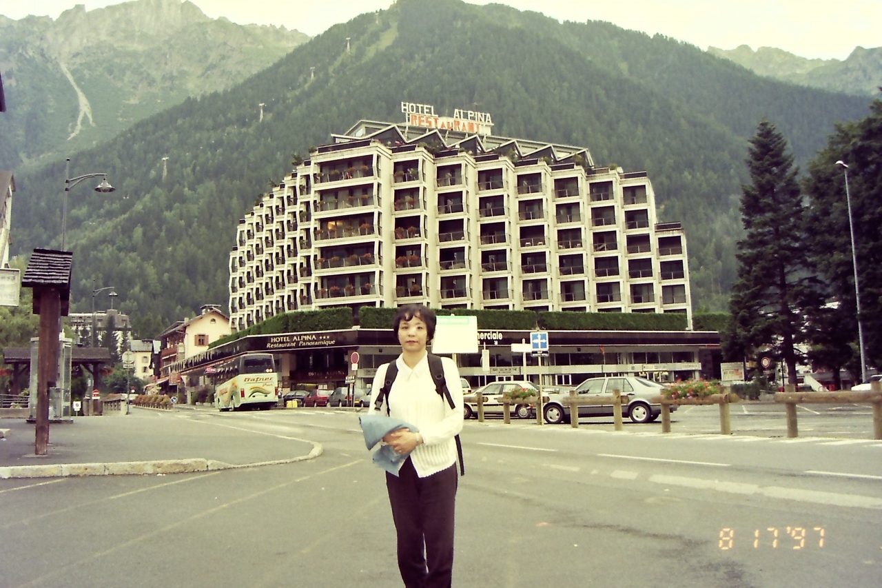スイスからバスでシャモニーに入る。綺麗なホテル。スイスでいろいろな山をトレッキングしてやや疲れ気味なので、明日のモンブランのため、早めに床に就く。朝起きると雨。がっかりした気分に。ツアーのなので、予定通りロープウエーに乗る。高度を上げるに従い、雲が切れ、エギーュ・デュ・ミディに着くとモンブランが綺麗に顔を見せてくれた。