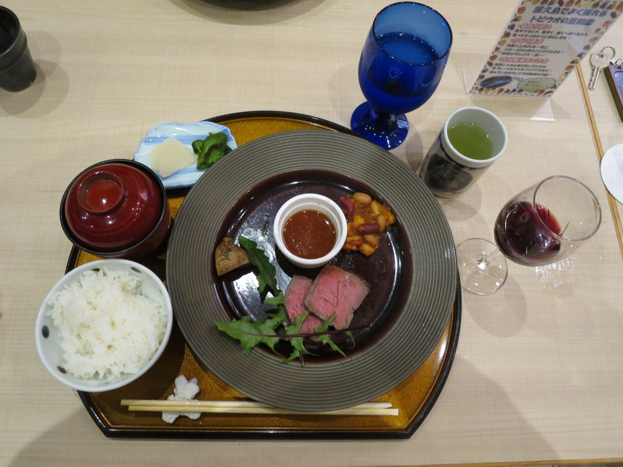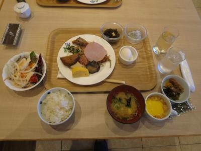 18時の伊丹行に乗る予定で、チェックインも終わって待合室で待っていると、呼び出しのアナウンス。鹿児島から来る飛行機が雷に当り引き返したため、欠航となる。地上係員が、ホテルと明日の便にお手配をテキパキとやってくれた。すぐに歩いてホテルに。5分程だった。急だったので、2000円の定食が何種類しかなかったが、刺身定食を選び、味はなかなか良かった。温泉もあり、ゆったりとくつろげた。朝、比較的早い便だったが、ホテルが近いので楽であった。