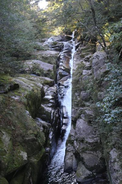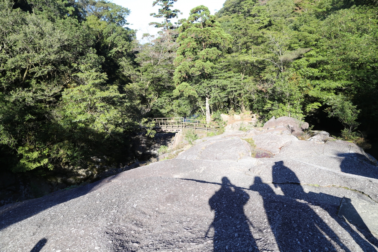 いこいの大岩を過ぎると飛流おとしの滝に出会う。50mほどの落差があるが雨が降っていないので、水量は少ない。さつき吊り橋までは道がしっかりしているが、二代大杉への道は地道になり、歩きにくい。小さな沢を渡ると、二代大杉に着く。初めて見る、屋久杉、大変立派に見えた。- 旅行時期
