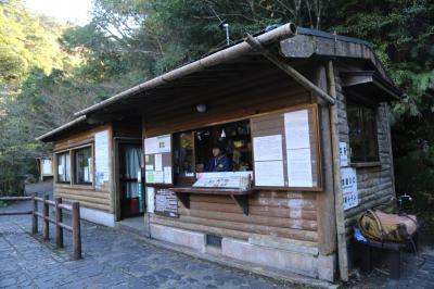 宮之浦で昼食を済ませ、レンタカーで白谷林道を白谷雲水峡へ。入り口を少し行き過ぎたところに駐車場が。20~30台止めることが出来き、無料。駐車場から入り口の途中にトイレがある。入り口で300円の入園料を払い、雲水峡に入る。入り口は標高610m、目標の二代大杉は730mなので、道は整備されているが、急な登り。