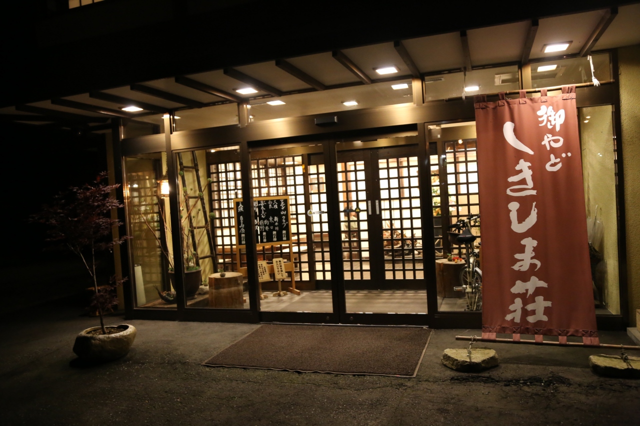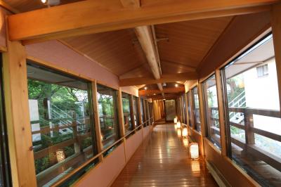 少し早めに着いたので、散歩前に駆け足で温泉に入る。浴槽が3つほどに分かれ、温度差をつけてあった。硫黄泉で肌にまったりする感じ。飲むことが出来るので少し飲んでみた。胃腸に良いとのこと。なお温泉では姉妹店の温泉も無料で利用できた。食事はみな個室で、雰囲気を大事にしていて、料理は創作懐石であった。なかなか美味しかった。部屋の掃除も行き届いていた。