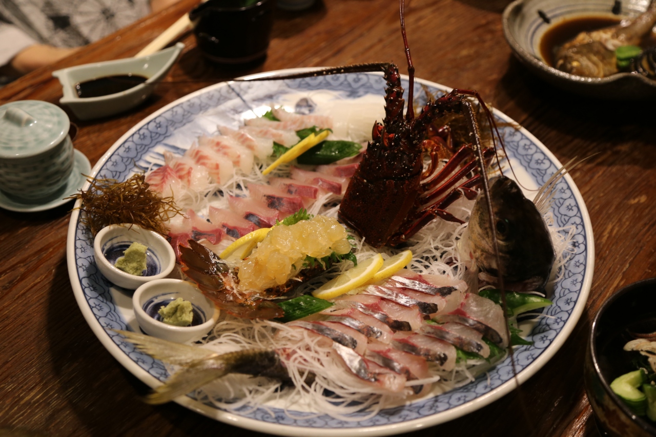 外観は歴史ある建物であるが、室内は経営者のメッセージを感じる仕掛けが所狭しと並べてある。旅行記で写真をアップさせていただいたが、大胆な絵が障子いっぱいに描かれたり、心が優しくなるような、置物の数々。すっかりこの旅館のファンになりました。大皿に、イセエビ、はなアジ、鯛、カンパチのお刺身。これが2人前。今日捕れたものを出すので鮮度は抜群。アワビ、さだえも別に出た。それ以外に焼き物も多く出された。はなアジは関アジと漁場は同じで、愛媛の方が漁場に近いと。九州に行くときは、今後もこのルートを使いえびすやさんに泊まりたいな。