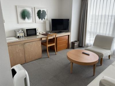エグゼクティブデラックスツインの客室に宿泊しました。とてもきれいな部屋で気持ちよくすごせました。クラブラウンジ付きのプランで予約したので17時までのティータイム、17時から20時までのカクテルタイムなどを利用することができます。カクテルタイムは12歳までの子供は18時30分までの利用になります。バンバンジー風のサラダやカツオのカルパッチョ、チーズやフライドポテトなどの料理にワイン、カクテル、オリオンビールなどが飲み放題です。館内のコインランドリーの隣にキッズコーナーがあり、洗濯を待つ間、子供を遊ばせるのに便利でした。1階にファミマが入っています。朝食は和食、洋食、沖縄料理と品数も多く美味しいです。会場は広いのですが混雑します。総じてコスパのよいホテルです