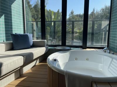 2024年にオープンしたばかりのアネックス棟に宿泊しました。新しいので気持ちよく滞在することができました。客室にはジェットバスがついています。インナーバルコニーの中にあるので雨が降っていても安心です。