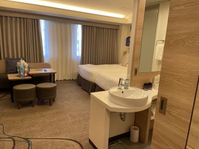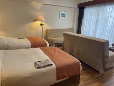 ツインの客室に子供と3人で宿泊しました。ベッド2台で狭く感じますが、壁面に机を配置し、テレビなどが置かれているので快適にすごせました。